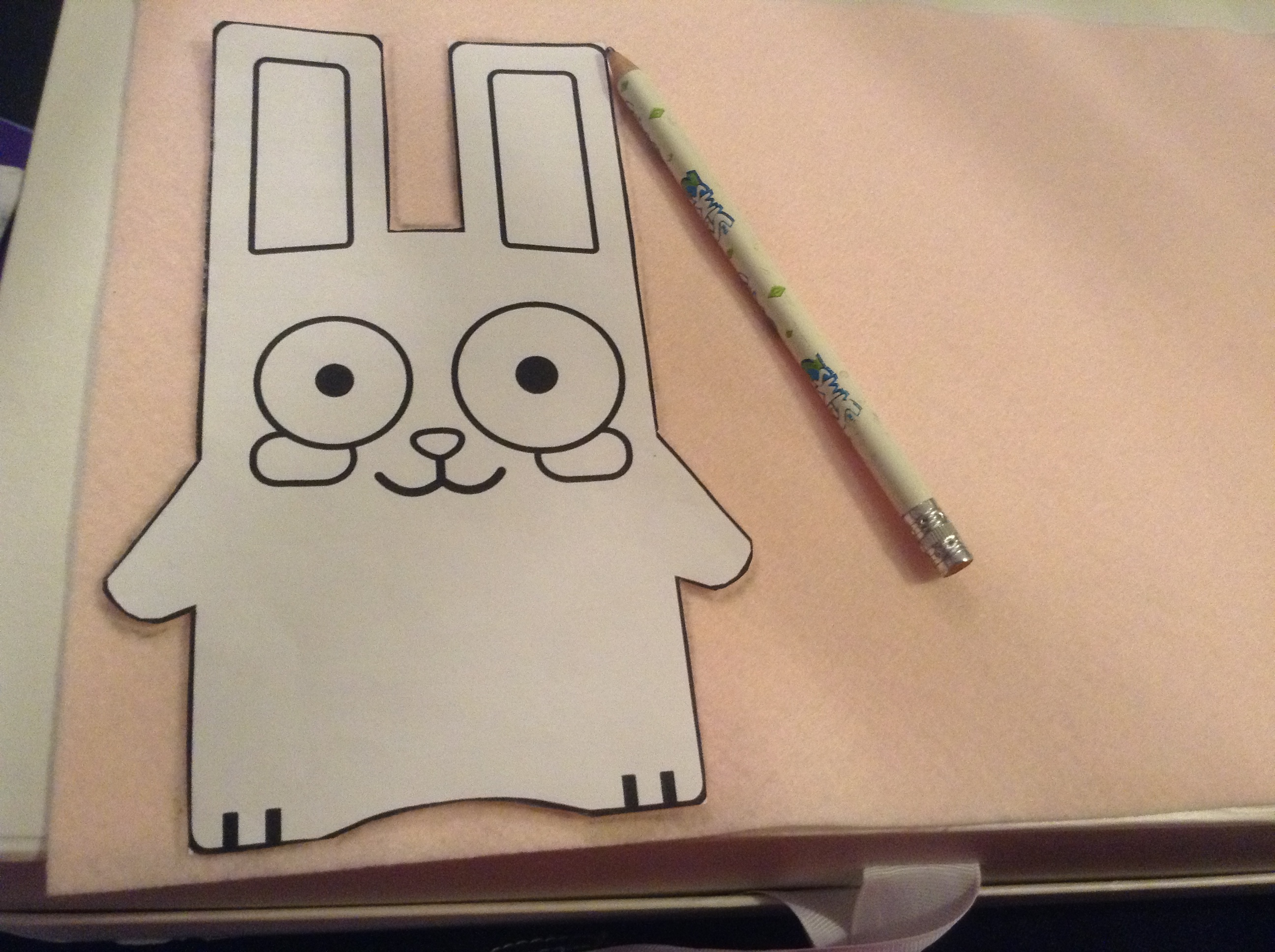 Put the bunny on the light pink sheet of felt and draw with either a pencil or a gel pen the outlines of the bunny. Make sure to leave enough room for the second bunny shape, and leave some margin around the lines!