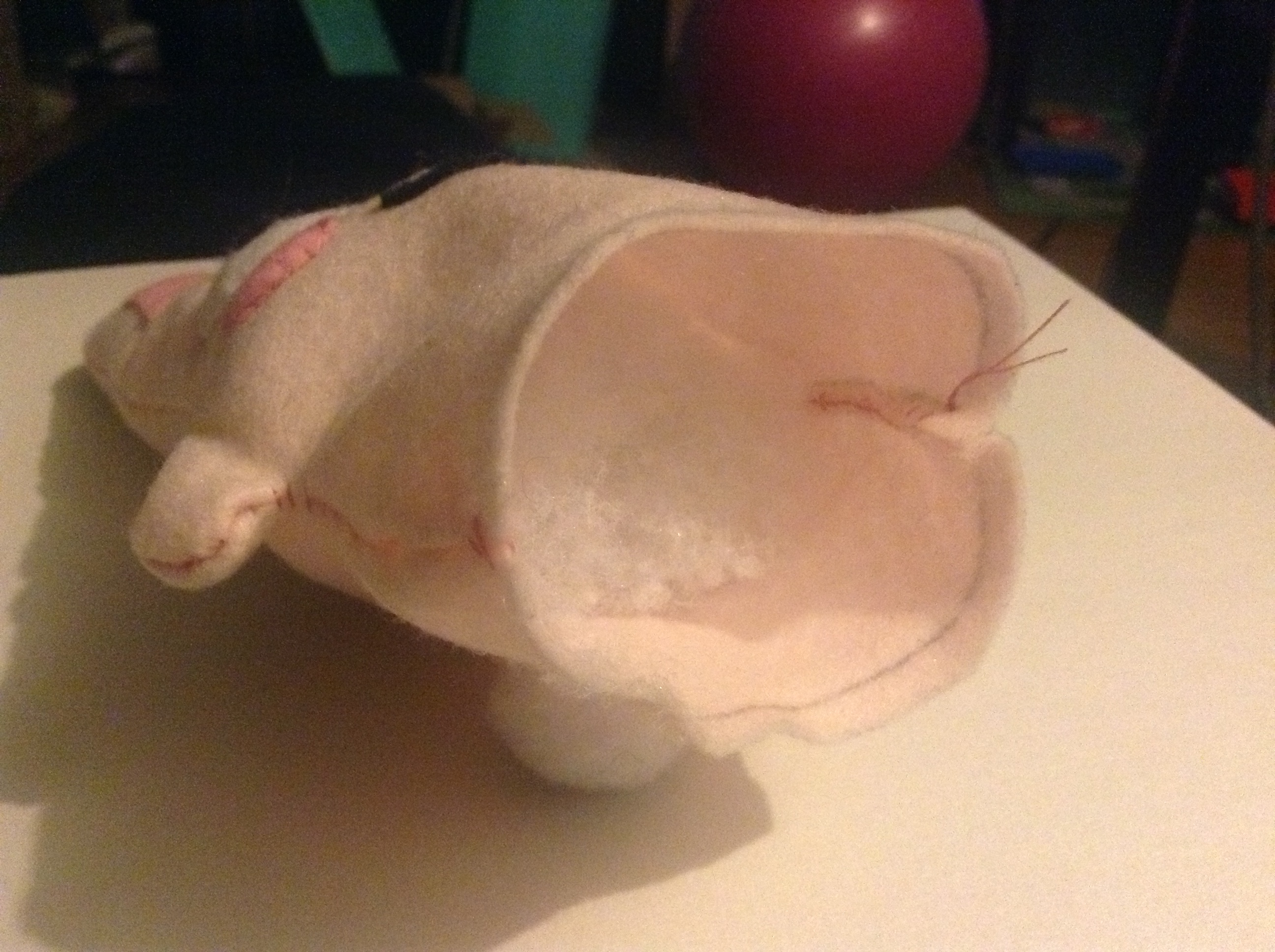 Stuff it! Make sure to push some stuffing into the ears, arms and also in the corners where the feet will be!
