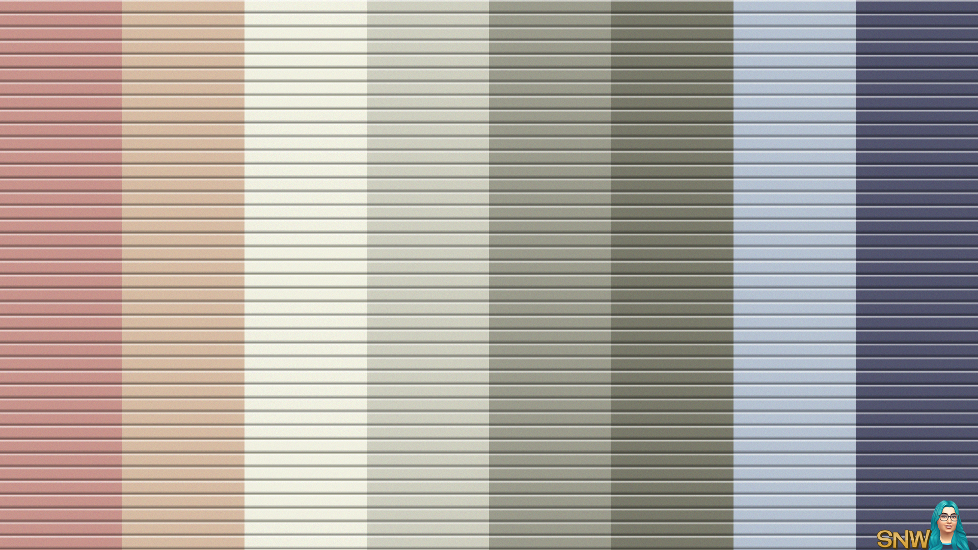 I made two styles. A flat/simple style, and a more bold/bevel style. I couldn't choose, and the followers on Twitter and Facebook liked both versions. That's why I decided to create both! Each style comes in 5 variations. This specific set of walls has 25 colour swatches to choose from!