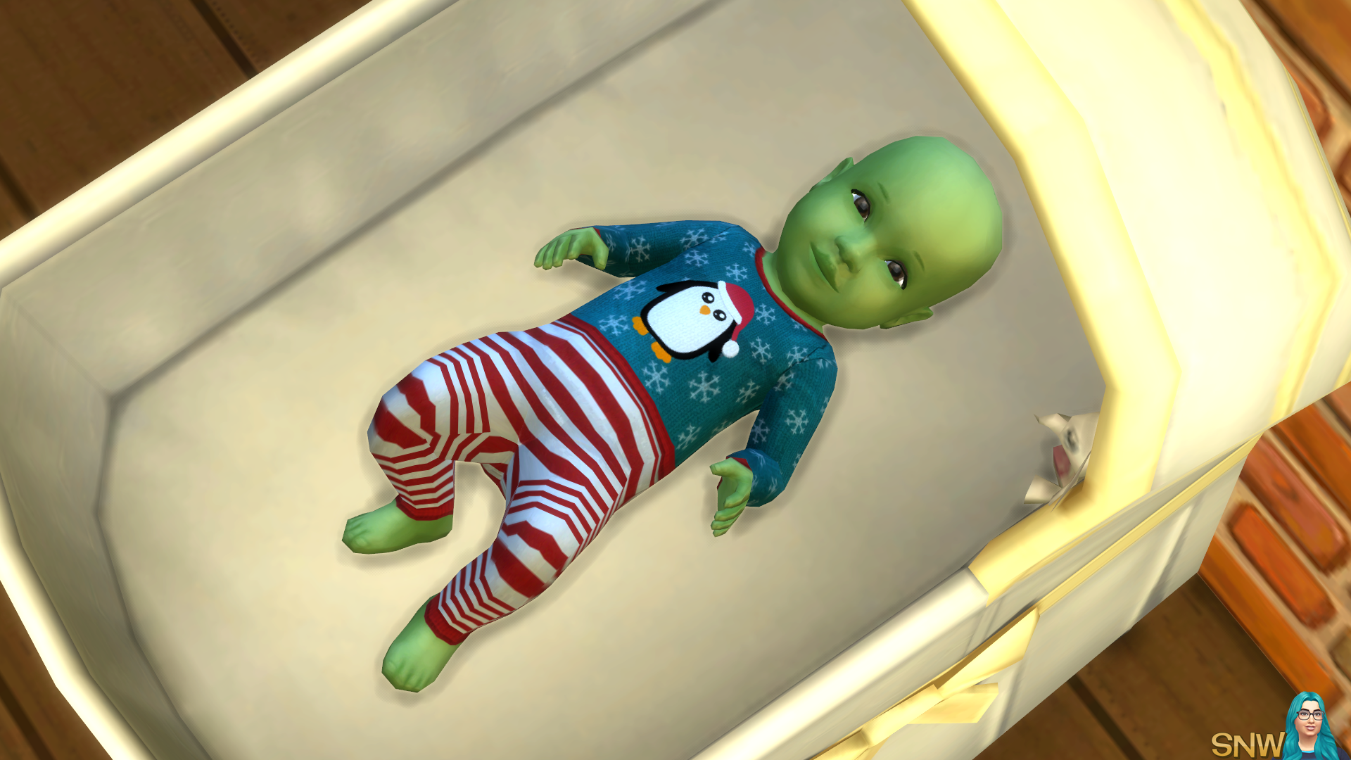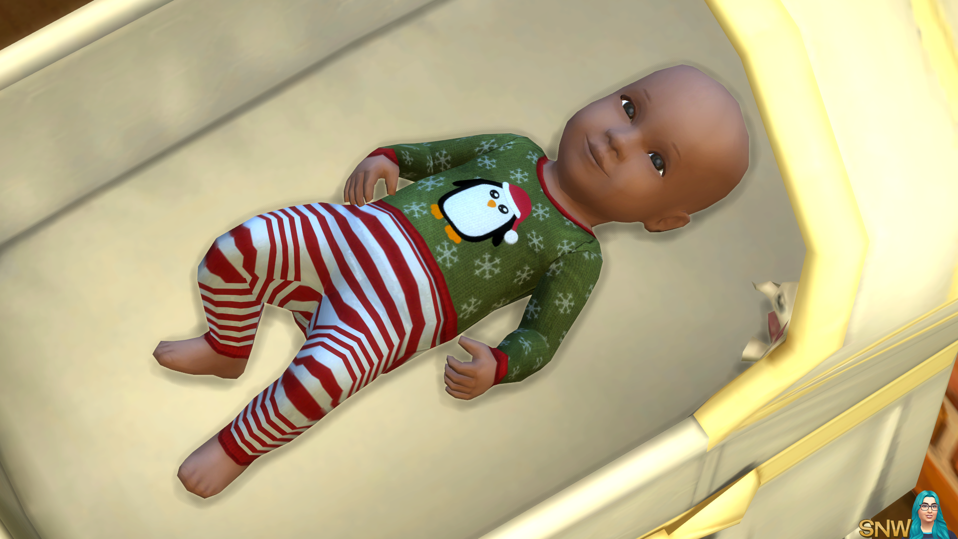 As you probably know I recently made a cute penguin illustration to make winter and Christmas sweaters for my Simmies. I managed to make sweaters for all ages and genders, except for babies. Now babies are tricky, since they are technically objects. But installing this file doesn't replace any cribs, it only replaces the outfits. Therefore I decided to list it as clothing.