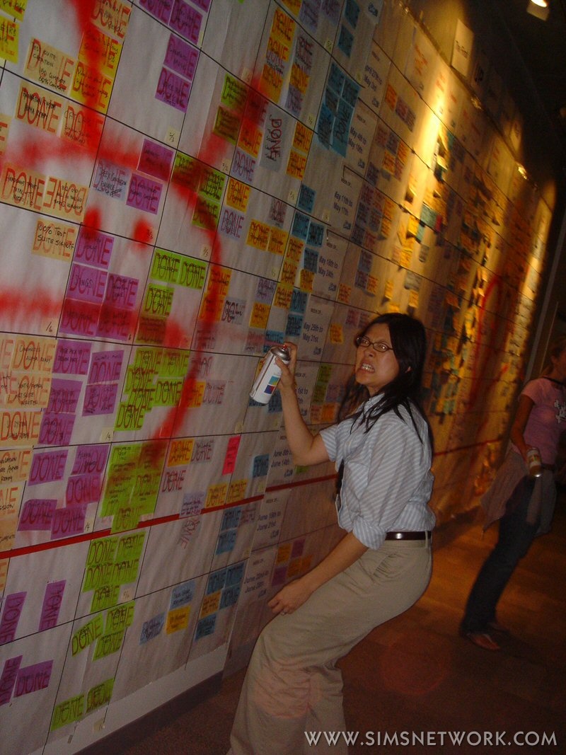 Just to show how far this Urban lifestyle has pushed us all here at Maxis, check out The Sims2's own Lucy Bradshaw tagging up the office!