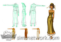Lyndsay: You may be surprised to find out that one of the first things we look at is you. We read the boards, we see customer survey reports, we take polls, we look at the kind of content you're creating for yourselves and we think about how to give you the things you commonly ask for. One of the biggest problems we initially had was "What is Glamour?" Glamour can mean so many things to different people that it was hard to find a definition we all agreed on. We started with sketches we call "high level concept art" to give us a "feel" of the kinds of things we could make that would be "glamourous".